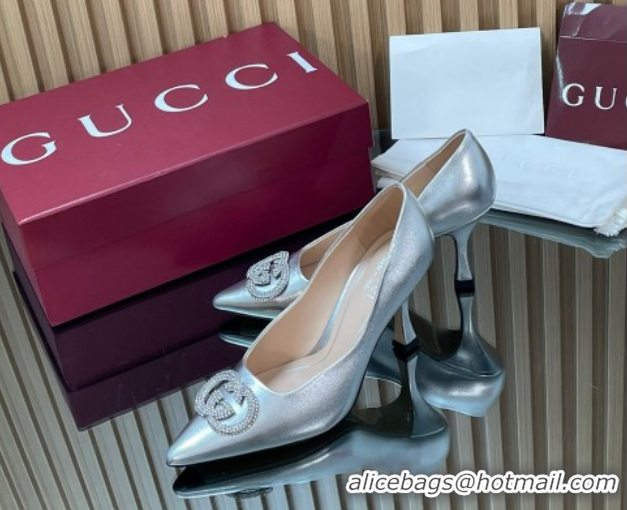 Most Popular Gucci Metallic Leather Pumps 8.5cm with Strass Interlocking G 852995 Silver 2026