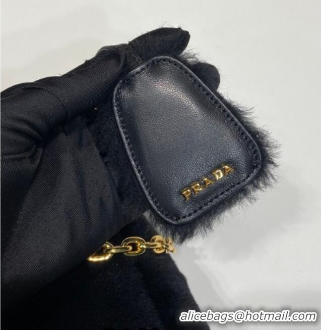 Hot Sell Cheap Prada Re-Edition mini shearling bag 1BC204 Black 2026
