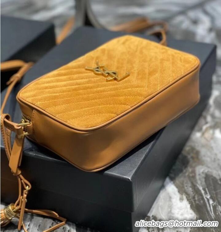 Cheapest Yves Saint Laurent LOU CAMERA BAG IN QUILTED SUEDE AND SMOOTH LEATHER 520534 brown