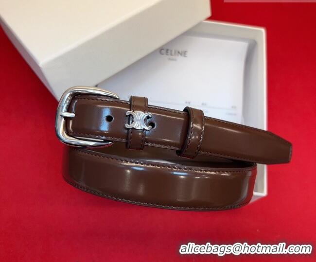 Inexpensive Celine Calfskin Belt 2.5cm with Metal-Tone Triomphe Buckle 0317 Brown 2025
