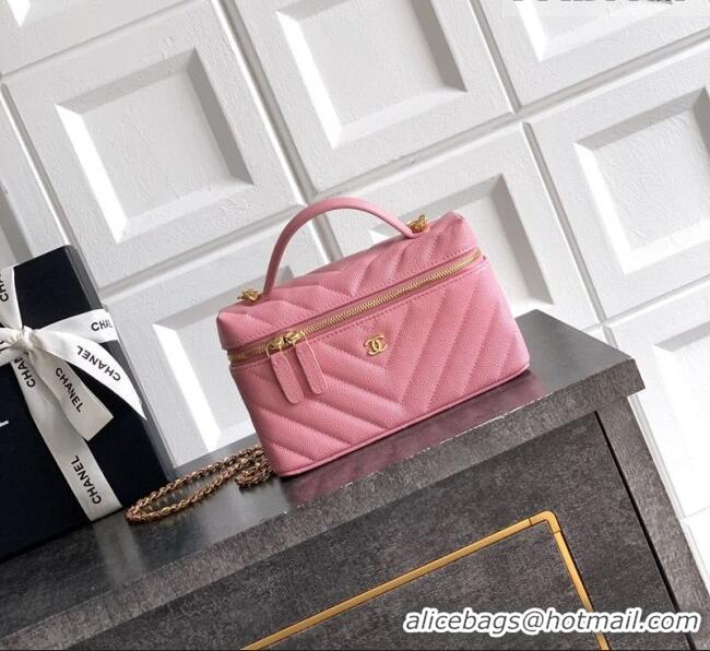 Trendy Design Chanel Vanity with Chain in Chevron Grained Calfskin AP5212 Sakura Pink 2026