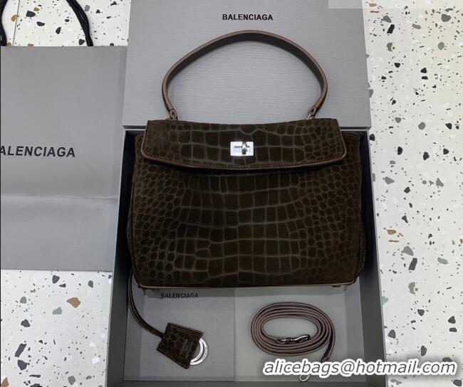 Classic Discount Balenciaga Rodeo Small Handbag in Crocodile Embossed Suede 78972 Dark Coffee 2026