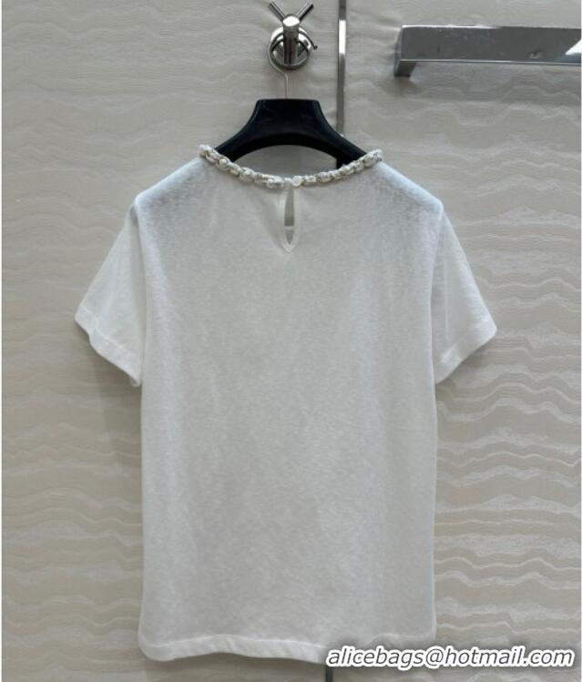 > Clothes Online > Chanel Clothes > Classic Grade Chanel Cotton T-Shirt with Pearl Collar CH061224 White 2025