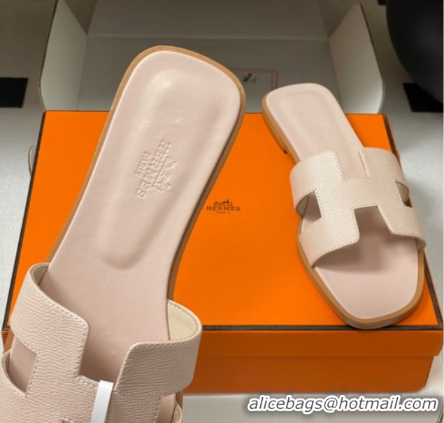 Good Looking Hermes Oran Classic Flat Slides Sandal in Palm-Grained Calfskin Nude 0819003