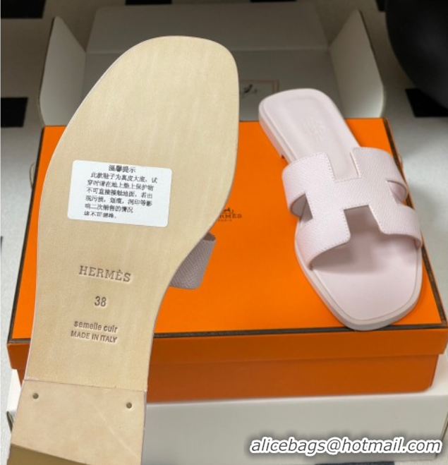Classic Hermes Oran Classic Flat Slides Sandal in Palm-Grained Calfskin Pale Purple 0819004