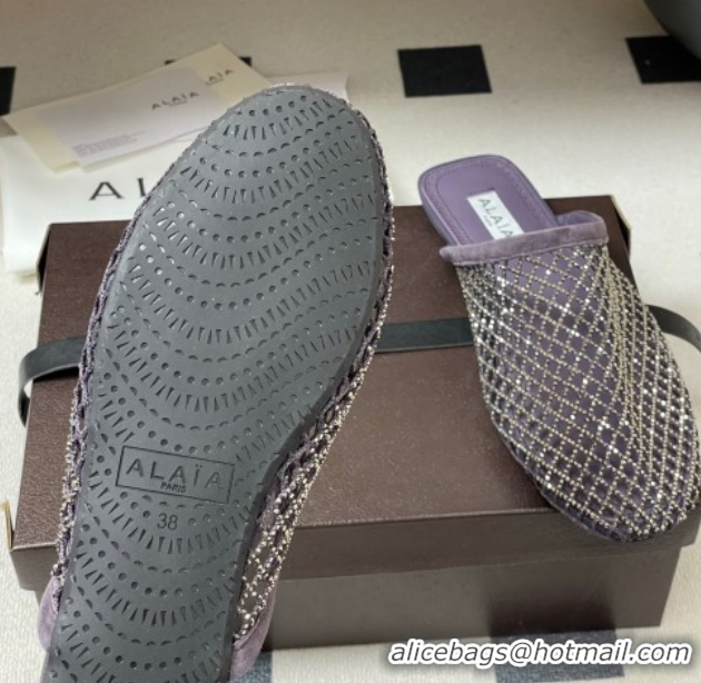 Purchase Alaia Flat Mules in Fishnet and Suede with Strass Purple 2025 AL020703