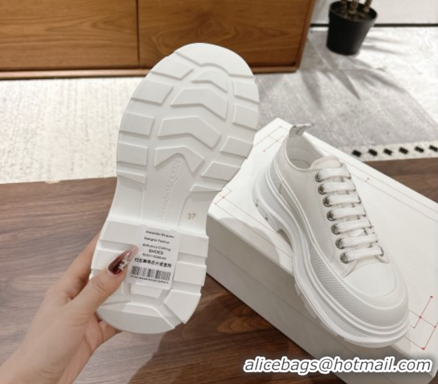 Classic Hot Alexander McQueen Tread Slick Canvas Lace Up Sneakers 5cm 208005 White 2026
