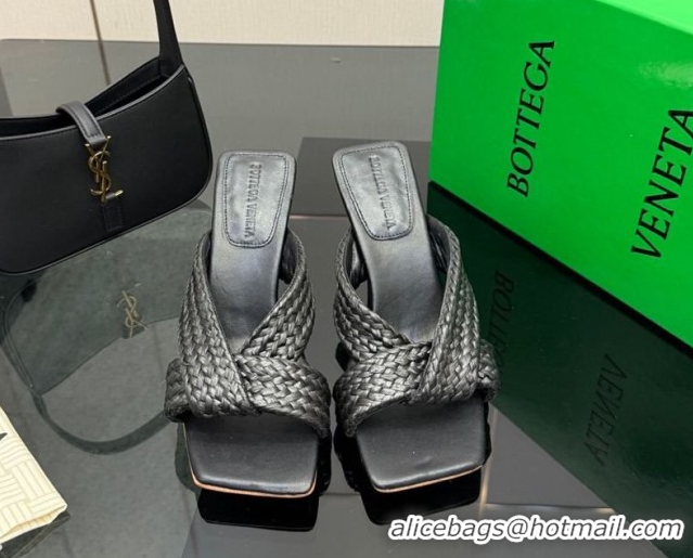 Good Looking Bottega Veneta Riva Heel Slides Sandal 9.5cm in Braided Straw 861494 Black 2026