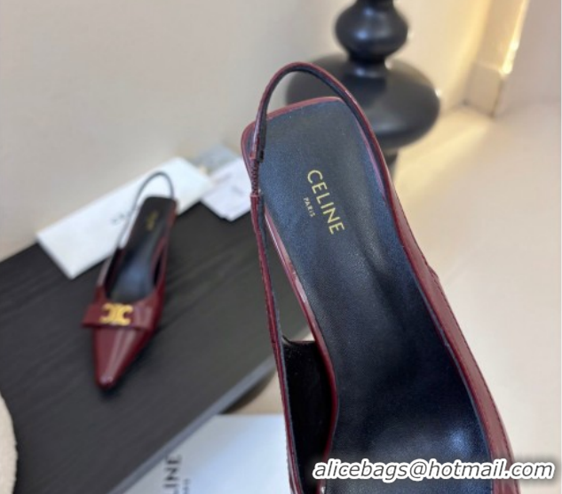 Luxurious Celine Bow Slingbacks Pump in Patent Leather Dark Burgundy 0227007 2026