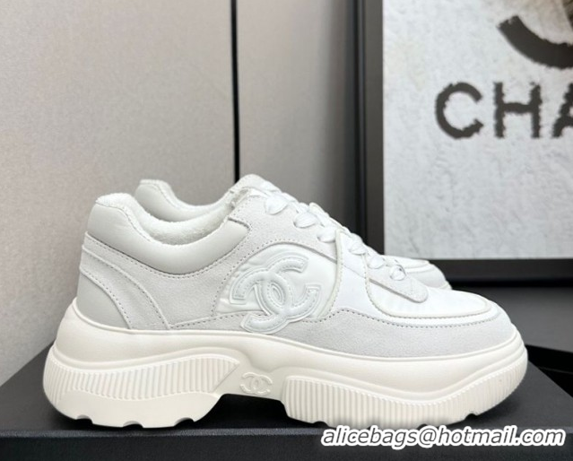 Classic Hot Chanel Calfskin Leather, Suede and Fabric Platform Sneakers White03 2025 CH110102 1101003