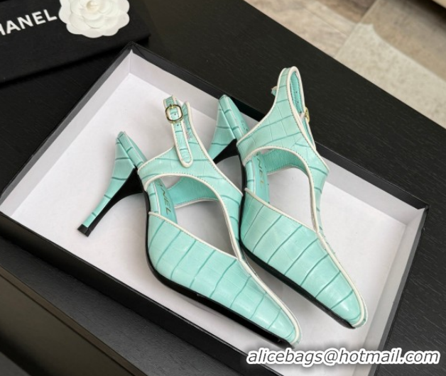 Luxury Chanel Crocodile Embossed Patent Calfskin Leather Slingbacks Pump G47184 Green 2026