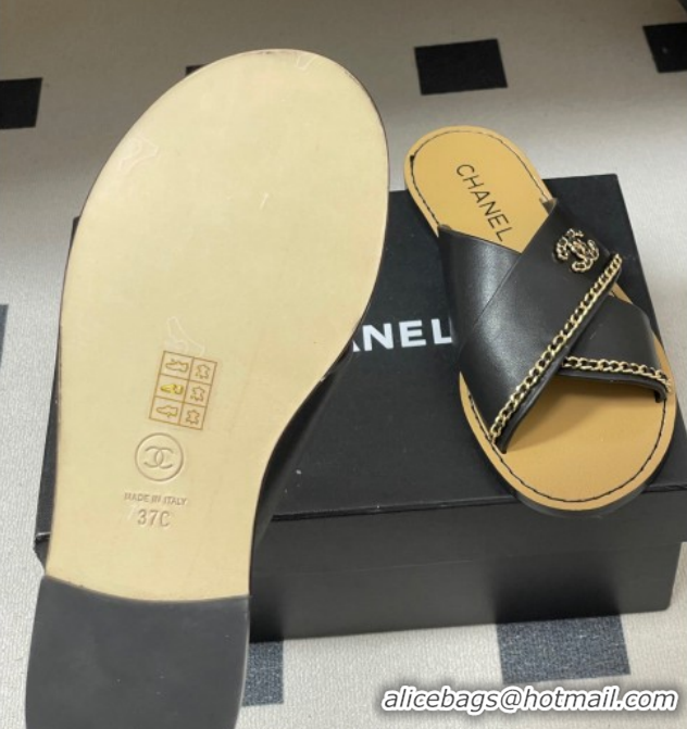 Top Design Chanel Calfskin Leather Flat Slides Sandal with Chain G46976 Black 2026