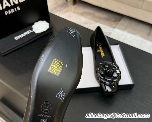 Unique Style Chanel Lambskin & Patent Calfskin Ballet flats with Camellia Bloom Black 2025 G46520