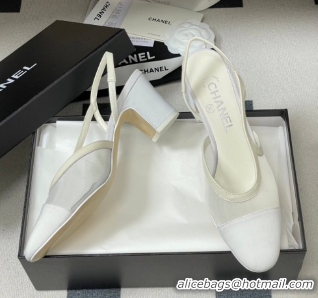 Super Chanel Mesh & Grosgrain Slingbacks Pump 6.5cm G31318 White 2026