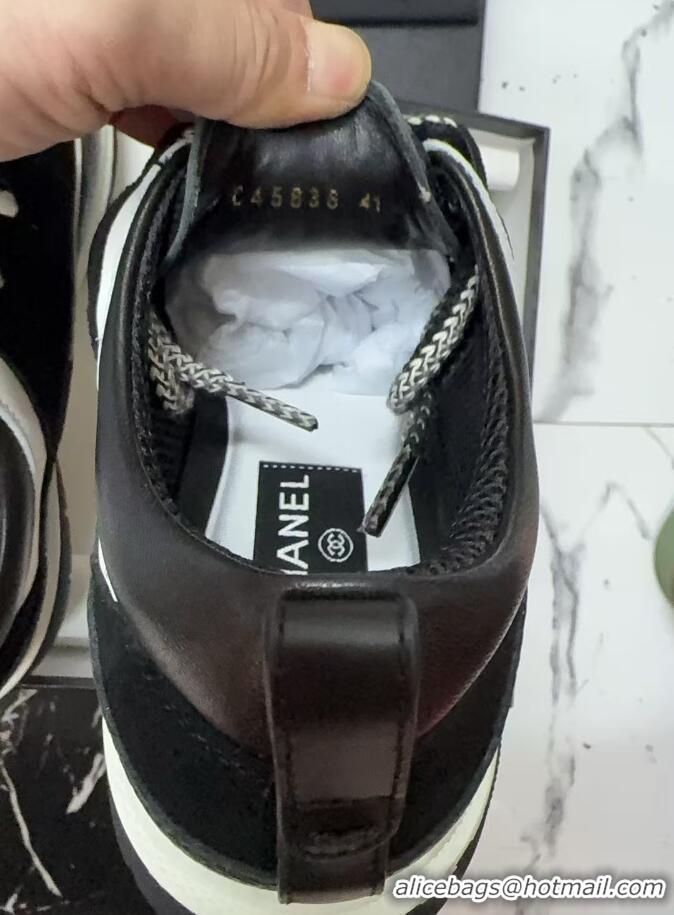 Classic Hot Chanel Suede and Calfskin Sneakers Black 0102011
