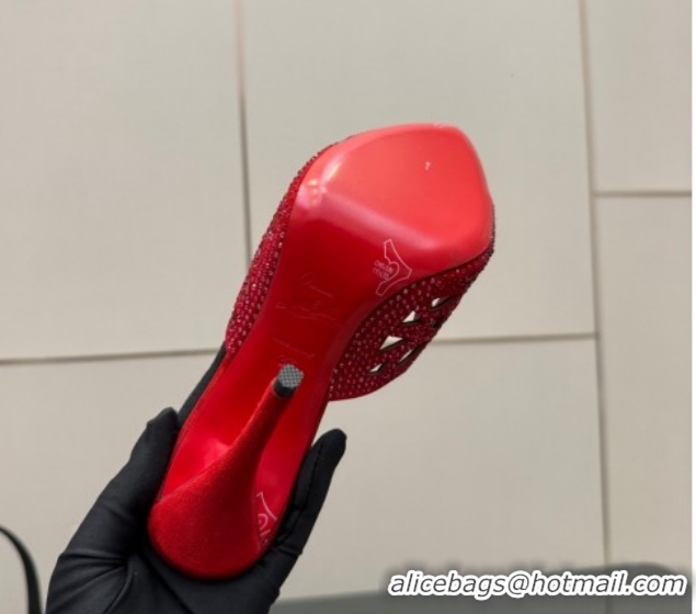 Luxury Christian Louboutin Miss Z Heel Slides Pump 10cm in Strass and Cut-out Suede Red 1209107 2026