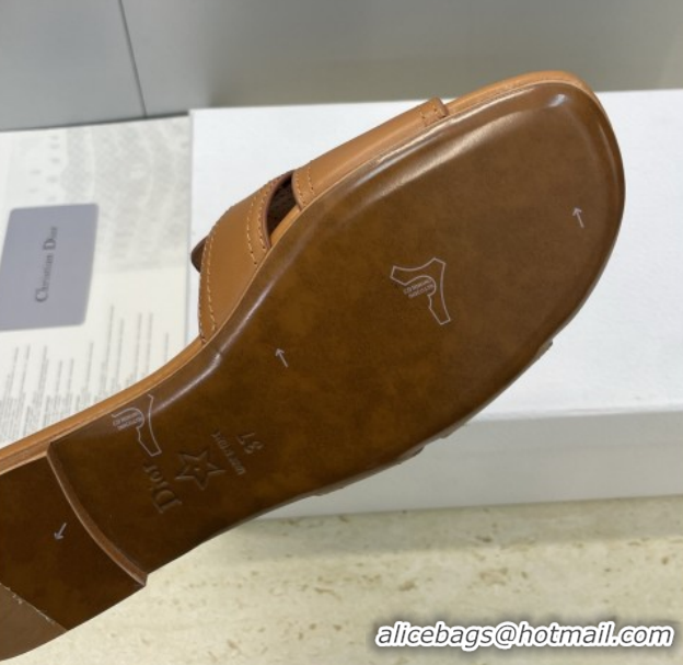 Classic Hot Dior 30 Montaigne Flat Slides Sandal in Calfskin Leather with Pearl Brown 1217007