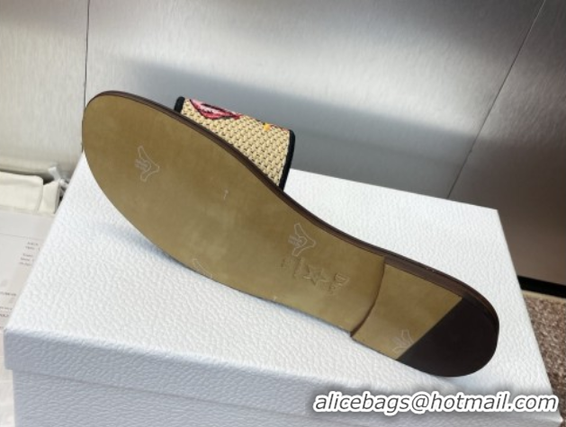 > Shoes Plaza > Chrisitan Dior Shoes > Good Quality Dior Dway Flat Slides Sandal in Straw and Embroidered Cotton Blue/White DR082204 0822087
