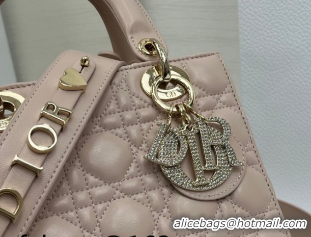 Stylish Dior Small Lady Dior My ABCDior Bag in Cannage Lambskin Leather with Strass Charm Pale Pink 0126054 2026