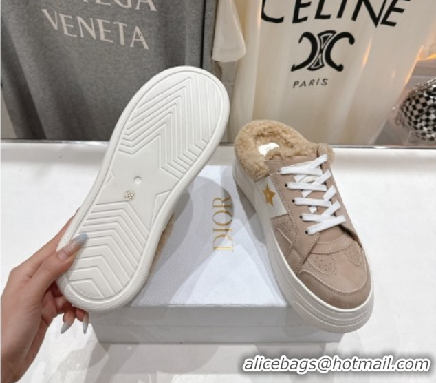 > Shoes Plaza > Chrisitan Dior Shoes > Classic Hot Dior Star Platform Sneaker Mules 5cm in Suede and Wool Beige 51029058