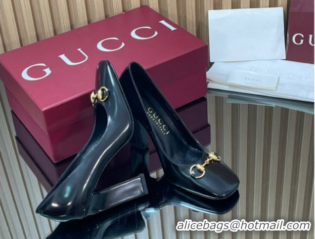 Top Grade Gucci Shiny Leather Pumps 10cm with Horsebit GG121801 Black 2026