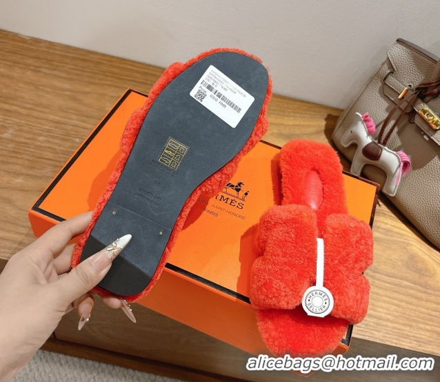 Best Product Hermes Oran Sandals in Shearling Wool H101607 Orange