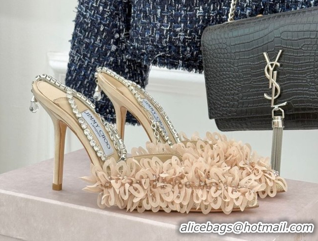 Classic Hot Jimmy Choo Mesh Pumps 10cm with Petal Embroidery and Strass Strap Beige 60206094 2026