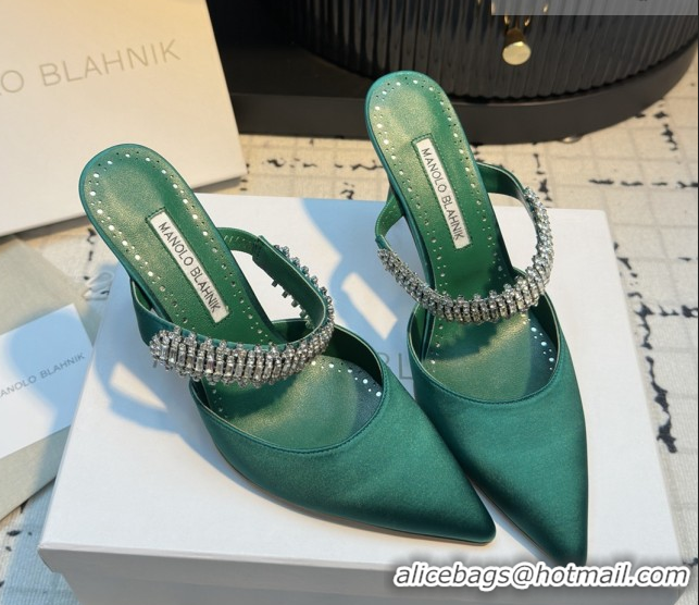 Classic Hot Manolo Blahnik Lutara 90 Satin Mules Strass Embellished Green 5112501