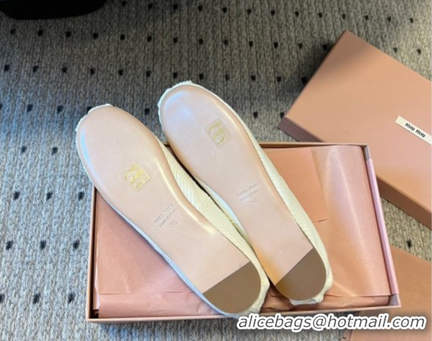 Classic Hot Miu Miu Corduroy Ballerinas Flat with Bow and Elastic Band 5F794D White 2025