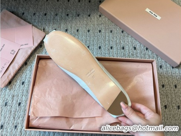 Classic Hot Miu Miu Leather Ballerinas Flat with Bow and Elastic Band 5F794D White 2025