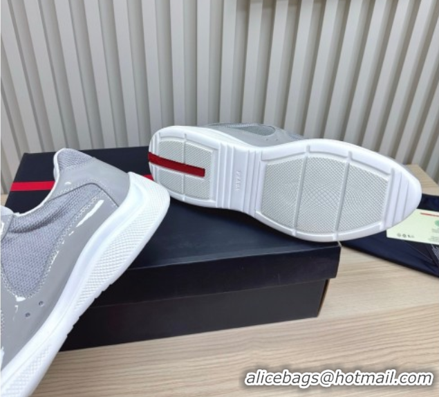 > Shoes Plaza > Prada Shoes > Classic Hot Prada Men's America's Cup Bike Patent Leather and Fabric Sneakers Light Grey 2025 3E6420 1027122