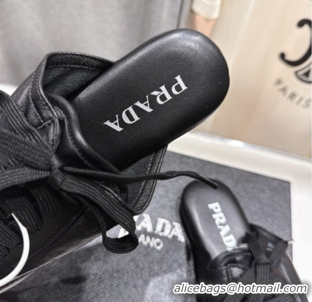 Sophisticated Prada Collapse Nappa Leather Lace-up Flat Mules Black 2025 1E989N 1027034