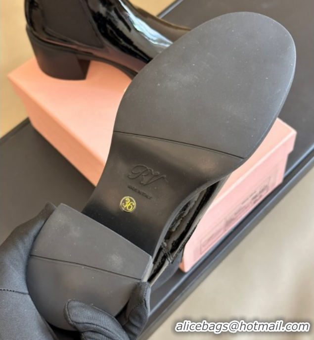 Classic Hot Roger Vivier Viv' Rangers Chelsea Booties 6cm in Patent Leather with Strass Buckle Black RV121204 1212024 2026
