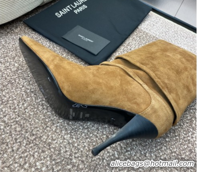 > Shoes Plaza > Yves Saint Laurent Shoes > Classic Hot Saint Laurent Niki Heel Ankle Boots 9.5cm with YSL Strap in Suede Brown 0825081