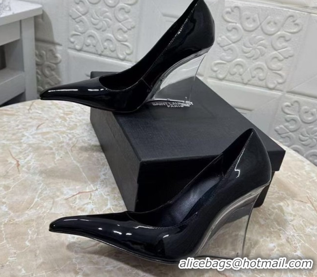 Purchase Saint Laurent Patent Leather Wedge Pumps 10.5cm with Clear Heel Black 2026 SL022405