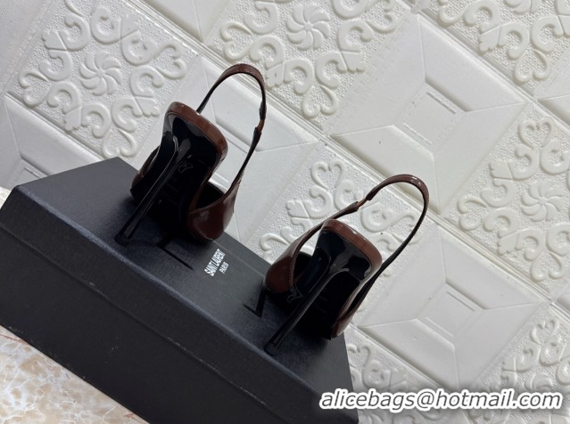 Stylish Saint Laurent Romy Slingback Pumps 10.5cm in Patent Leather Brown 1028085
