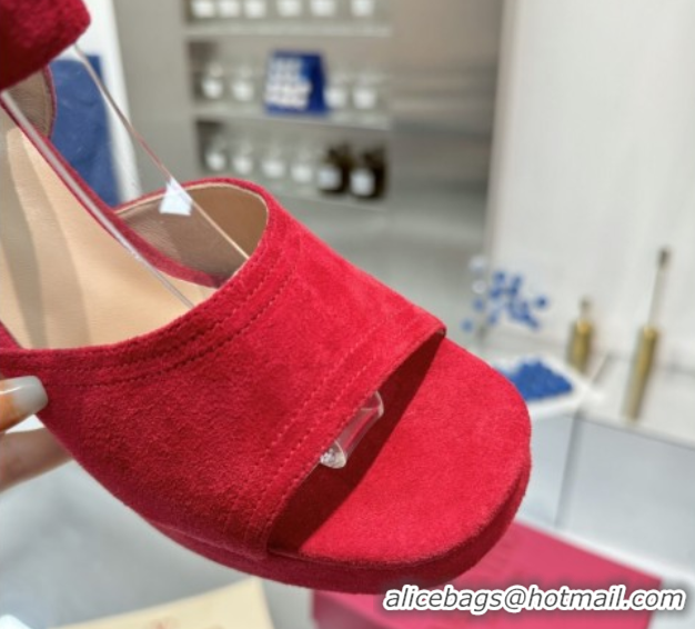 Classic Hot Valentino Fawcette Platform Sandals 10cm in Suede Red 0902035