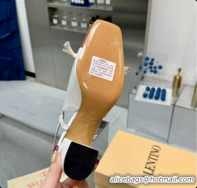 > Shoes Plaza > Valentino Shoes > Classic Hot Valentino VALET DU ROI Slingbacks Pump 6cm in Calfskin Leather with Tassel Bow White/Brown 1215038