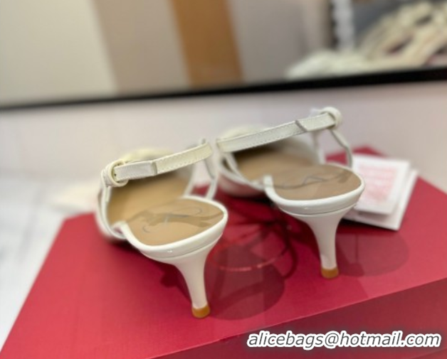 Classic Hot Valentino VLogo Signature Slingback Pumps 4.5cm in Patent Calfskin White 2025 VA082111