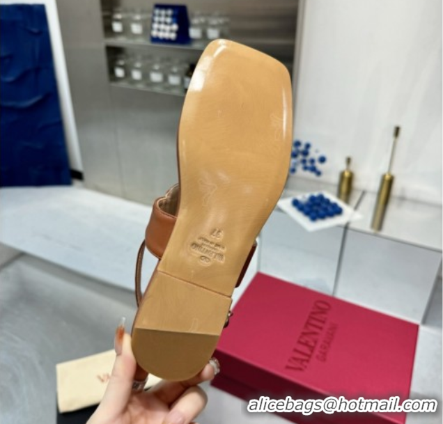 Classic Hot Valentino Vlogo Signature Flat Thong Sandals in Calfskin Brown 0902056