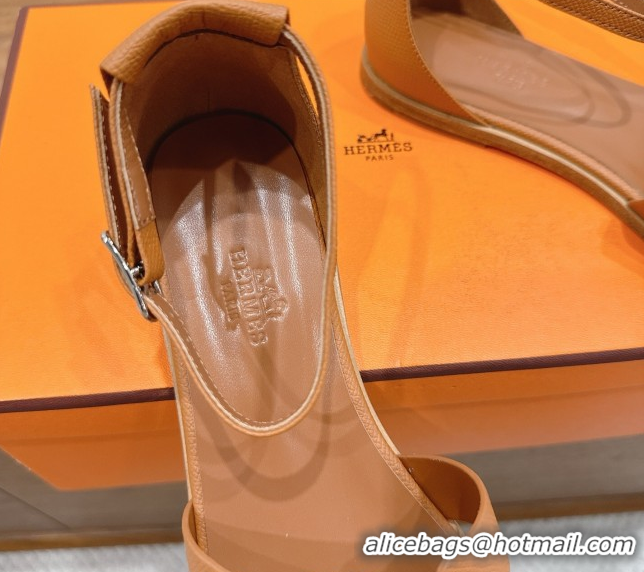 Low Price Hermes Santorini Flat Sandals in Epsom Calfskin Brown H082013 0820187