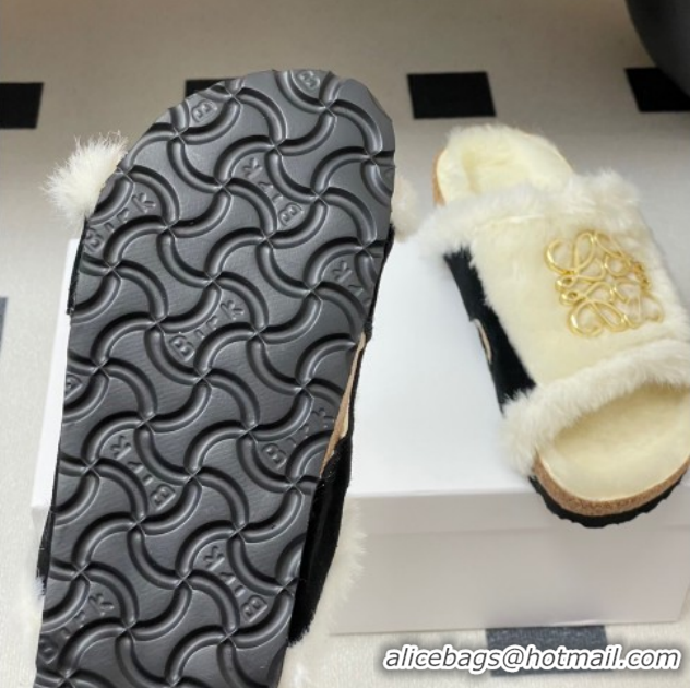 > Shoes Plaza > Loewe Shoes > Best Price Loewe Flat Slides Sandal in Suede and Wool 2026 LW103003 Black