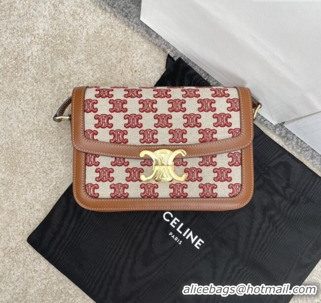 Your Position: Home > Celine Handbags > Celine 2025 Bag > Classic Specials Celine Classique Triomphe Bag in Triomphe Embroidery Canvas & Calfskin 187363 Brown/Red 2025