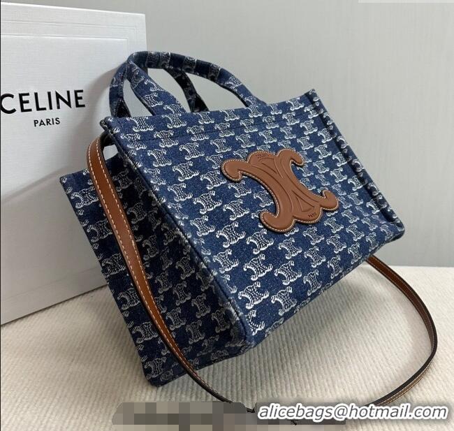> Celine Handbags > 2023 Celine Bags > Classic Specials Celine Small Cabas Thais Tote Bag in Denim with Triomphe All-over 199162 2024