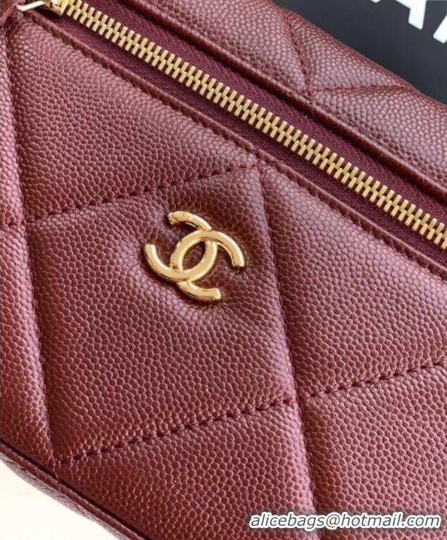 Classic Specials Chanel Grained Shiny Calfskin Vanity Case with Chain and Top Handle AP4936 Burgundy 2025