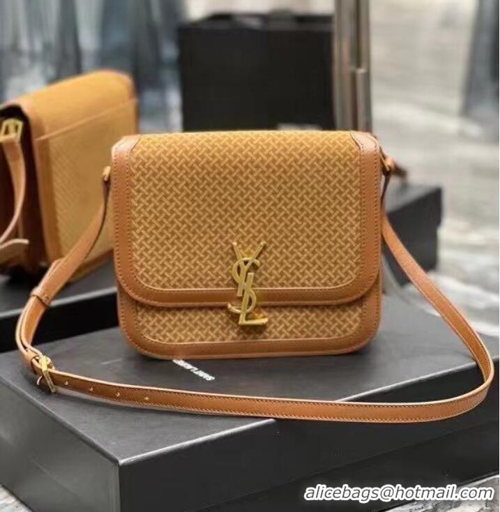 Classic Yves Saint Laurent SOLFERINO MEDIUM SATCHEL IN LEATHER AND A BRAIDED SUEDE PRINT 02525 LIGHT BROWN