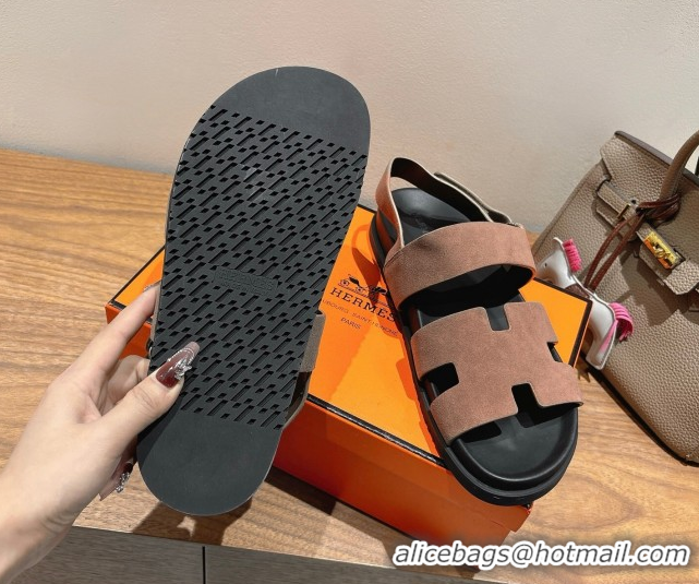 Comfortable Hermes Genius Strap Sandals in Suede Taupe H082011 0820174