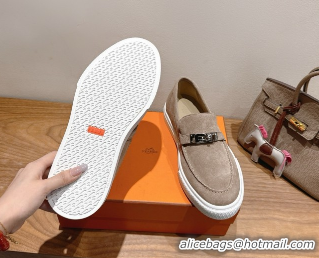 Crafted Hermes Game Suede Slip-on Sneakers with Kelly Buckle Grey1 2025 H082007 0820062