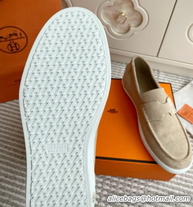 Crafted Hermes Job Loafers in Suede H090812 Beige
