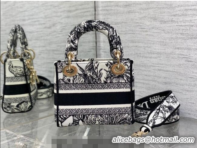 Top Design Dior Mini Lady D-Lite Bag in Toile de Jouy Voyage Embroidery CD6085 White and Black 2023